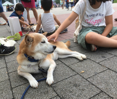 - セラピードッグ見習い中の元噛み犬のトン吉